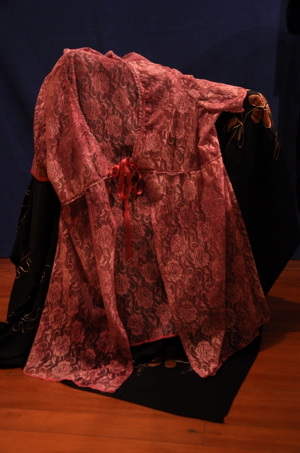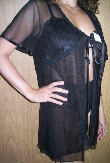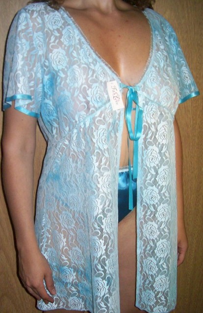 Bata de microtul con encaje combinada con una sensual pollerita y bombacha en un solo cuerpo.